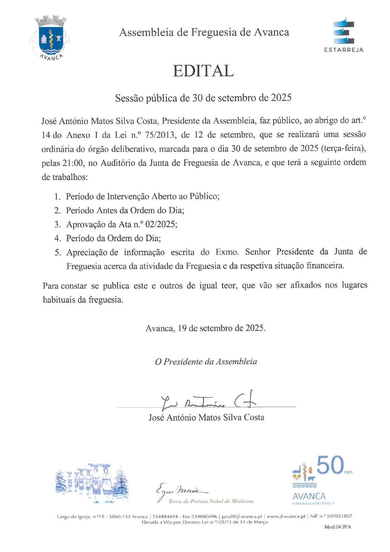 Contando com os Avancanenses, nós, Junta de Freguesia, tudo faremos pela prosperidade da nossa TERRA, AVANCA.